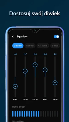 Przenieś swoje doświadczenie słuchania muzyki na nowy poziom z Lark Player – wszechstronnym odtwarzaczem, który pozwala na pełną personalizację brzmienia. Wykorzystaj potężne korektory graficzne oraz predefiniowane tryby dźwięku, aby idealnie dopasować akustykę do każdego gatunku. Niezależnie od tego, czy preferujesz głębokie basy heavy metalu, subtelność jazzu, czy dynamiczny rytm hip-hopu, Lark Player oferuje gotowe ustawienia takie jak normalny, klasyczny, taniec, folk, pop i rock, zapewniając zawsze doskonałą jakość dźwięku offline. To Twoja muzyka, dostrojona dokładnie tak, jak lubisz.