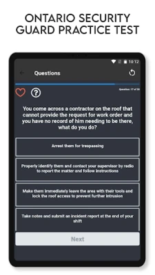 Dzięki Ontario Security Guard Test nauka staje się angażującym doświadczeniem. Opracowane przez ekspertów branżowych materiały edukacyjne, interaktywne quizy i praktyczne scenariusze zapewniają dogłębne zrozumienie kluczowych koncepcji bezpieczeństwa. Co więcej, nasza aplikacja oferuje realistyczną symulację egzaminu, która pozwala oswoić się z formatem, ograniczeniami czasowymi i typami pytań. Ćwicząc w środowisku odzwierciedlającym rzeczywiste warunki, zyskasz pewność siebie i będziesz doskonale przygotowany, by zaprezentować się z najlepszej strony w dniu prawdziwego testu, a także skutecznie działać w realnych sytuacjach.
