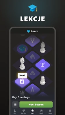 Doskonal swoje umiejętności dzięki obszernym zasobom edukacyjnym Chess.com. Ponad pół miliona zadań szachowych czeka na rozwiązanie, a poziom trudności adaptuje się do Twojego progresu, zapewniając efektywną naukę. Pozyskaj wiedzę z setek starannie przygotowanych lekcji i filmów instruktażowych, prowadzonych przez mistrzów szachowych, które krok po kroku przeprowadzą Cię przez tajniki gry – od otwarć po skomplikowane końcówki. Interaktywny trener szachowy analizuje Twoje posunięcia, oferuje cenne wskazówki i pomaga zrozumieć strategię na każdym etapie partii.