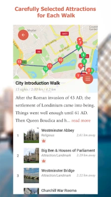 Ta aplikacja oferuje samodzielne spacery po mieście, prezentując główne atrakcje z mapami tras i nawigacją. Zwiedzaj we własnym tempie, bez potrzeby zorganizowanych wycieczek, płacąc ułamek kosztów tradycyjnych wycieczek z przewodnikiem.